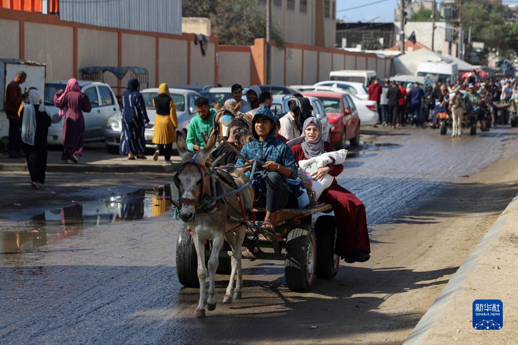 11月14日,在加沙地帶南部城市汗尤尼斯,人們乘驢車(chē)出行。