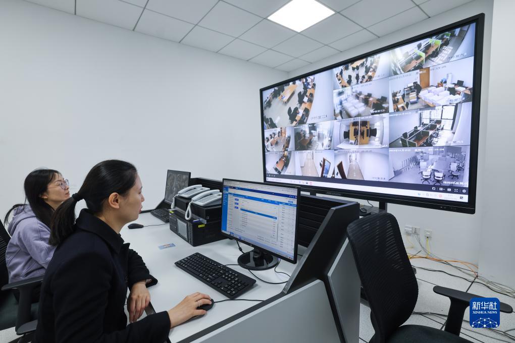11月15日,在杭州市臨安區政務(wù)服務(wù)中心的交易中心數字見(jiàn)證室,工作人員在電腦前抽取評標專(zhuān)家。
