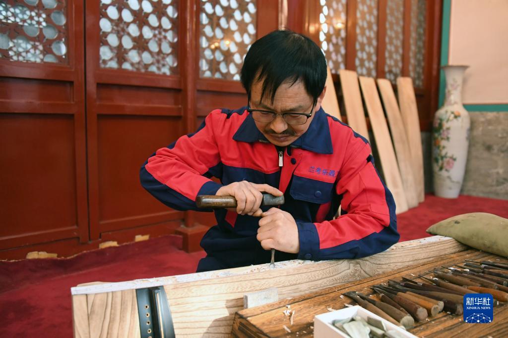11月15日,樂(lè )器制作師在活動(dòng)中展示“蘭考古箏”制作。