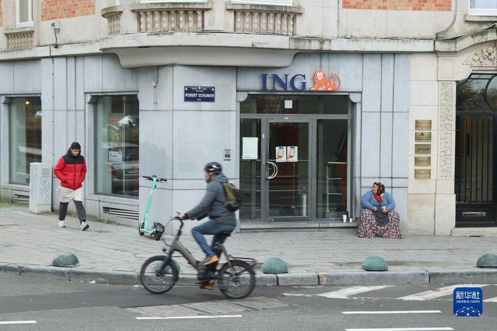 11月15日,人們從比利時(shí)布魯塞爾一家銀行網(wǎng)點(diǎn)前經(jīng)過(guò)。