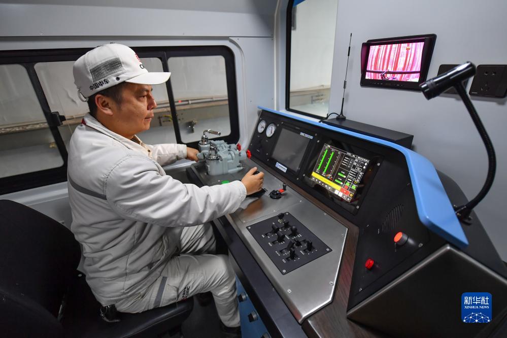 11月16日,中車(chē)株機公司的工作人員在機車(chē)內巡檢。