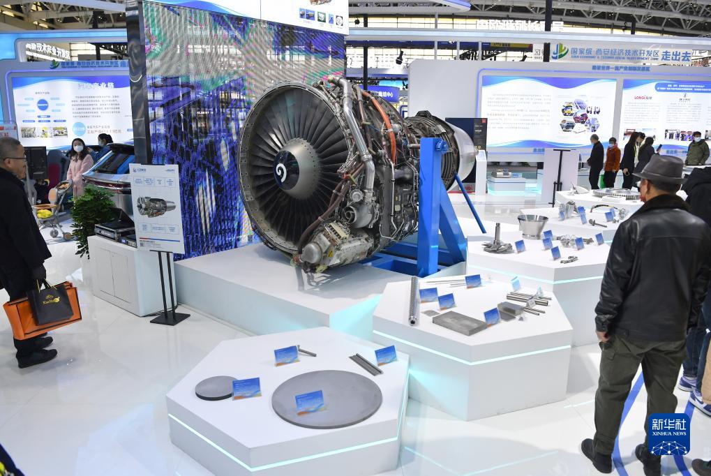 11月16日,觀(guān)眾在第七屆絲博會(huì )上參觀(guān)一款航空發(fā)動(dòng)機。