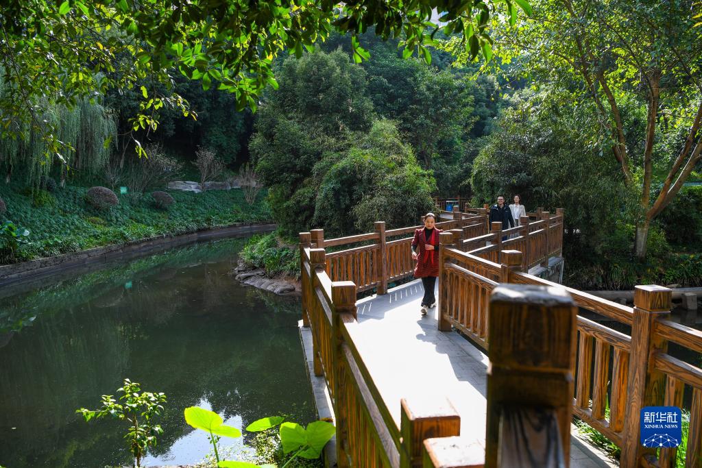 11月16日,在重慶市渝北區龍山街道龍華社區,居民在盤(pán)溪河岸邊散步、休閑。