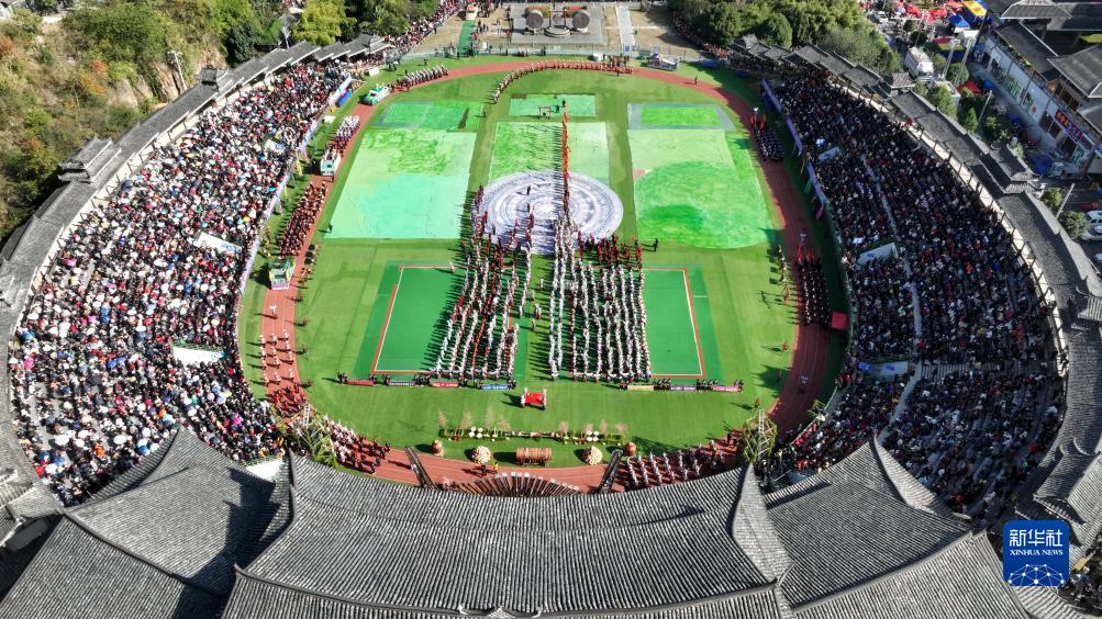 當日,貴州省黔東南苗族侗族自治州雷山縣迎來(lái)苗族同胞的傳統節日苗年。今年苗年又恰逢十三年一次的鼓藏節,歡樂(lè )氣氛格外濃烈。來(lái)自縣內外的數萬(wàn)名苗族群眾歡聚雷山縣城,通過(guò)盛裝巡游、非遺展示、千人長(cháng)桌宴等形式歡度節日。苗年和鼓藏節均為國家級非物質(zhì)文化遺產(chǎn)。