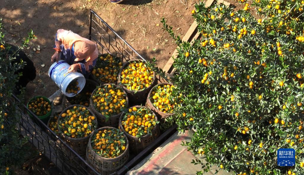 11月16日,在廣西柳州市柳城縣華僑農場(chǎng),果農采收蜜桔。