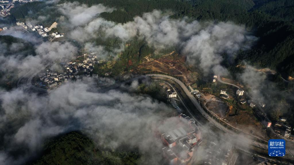 初冬時(shí)節,位于貴州省黔東南苗族侗族自治州雷山縣境內的雷公山國家森林公園,云霧繚繞,民居、梯田、公路、橋梁交相輝映,美不勝收,景色如畫(huà)。