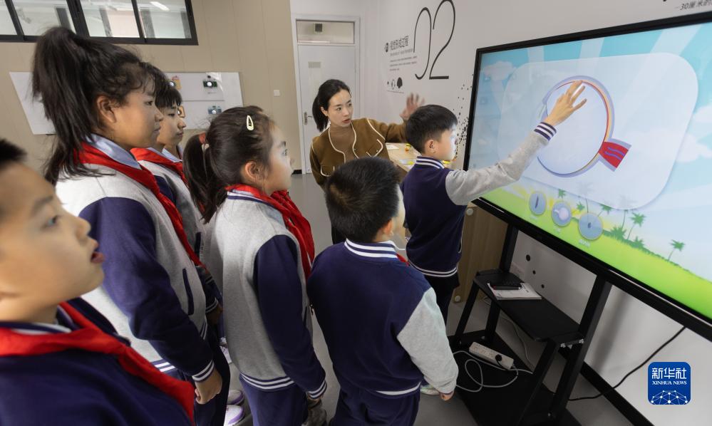11月17日,在成都市迎賓路小學(xué)健康空間,健康老師帶領(lǐng)學(xué)生學(xué)習眼睛健康知識。