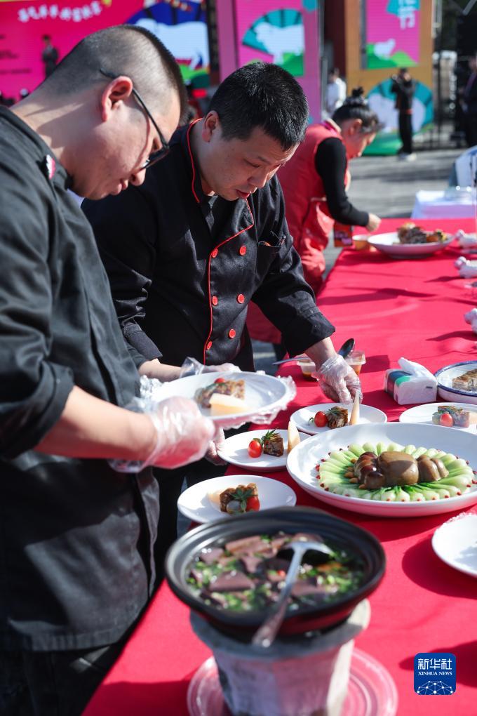 11月17日,在板橋鎮花戲村的湖羊文化節金廚爭霸賽上,參賽廚師制作特色湖羊美食。