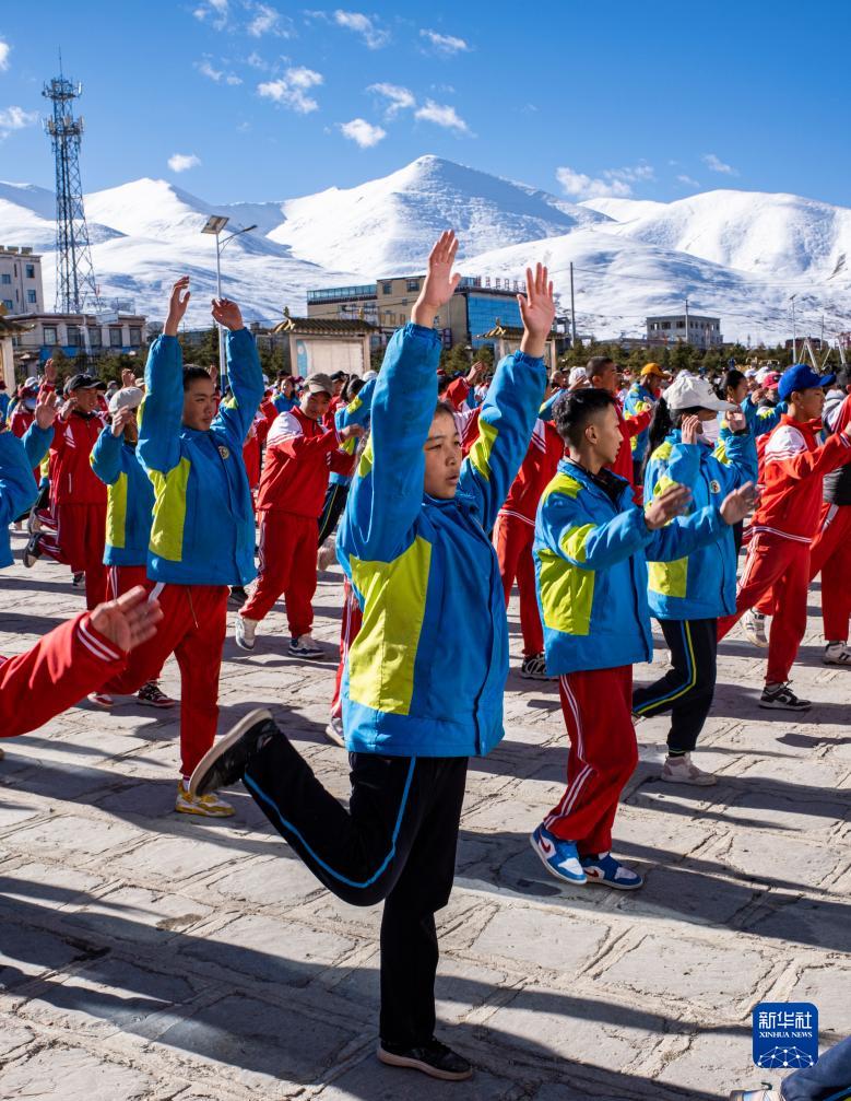 斯曲卓瑪(前)在做課間操(11月10日攝)。