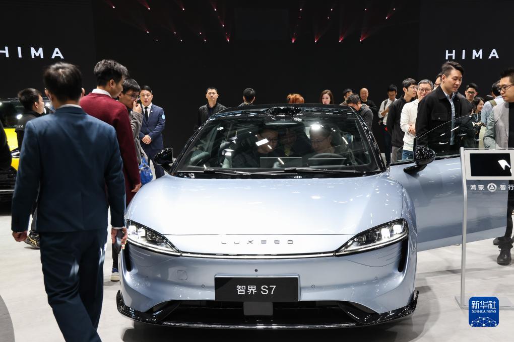 11月17日,華為智選車(chē)業(yè)務(wù)首款轎車(chē)智界S7亮相廣州車(chē)展鴻蒙智行展臺。