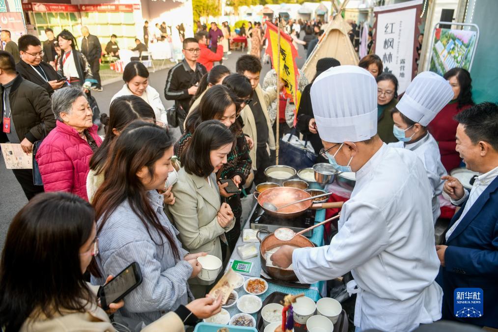 11月17日,在第四屆荊楚鄉村文化旅游節集市上,游客在品嘗米酒。