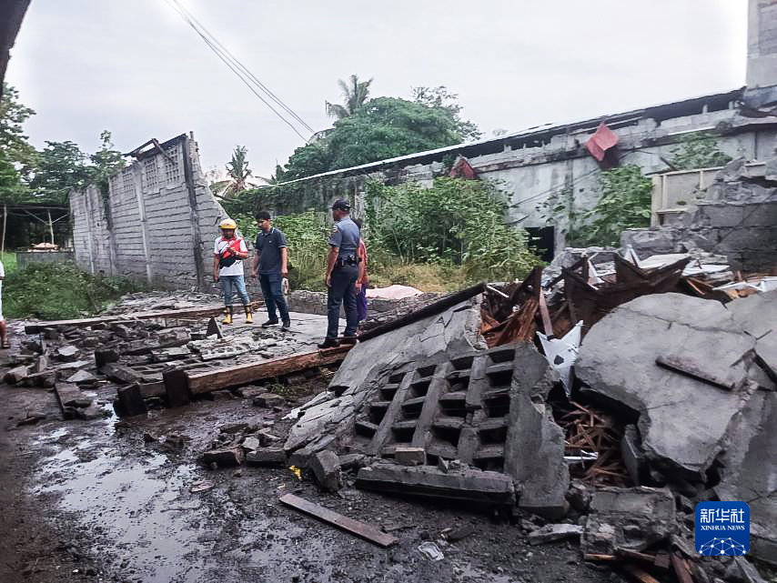 11月17日,在菲律賓桑托斯將軍城,人們查看地震造成的房屋損毀情況。