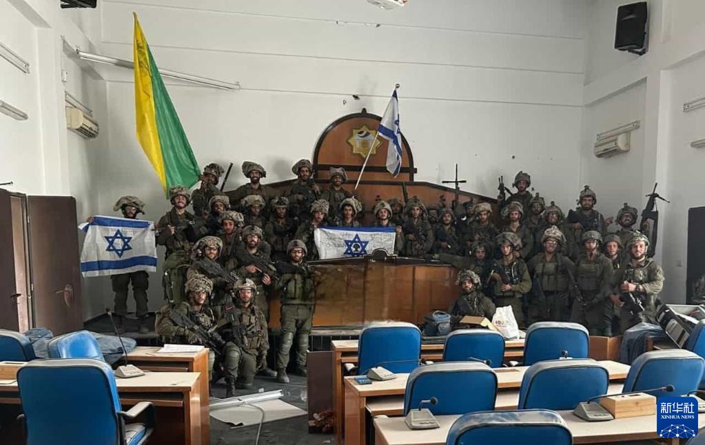 這張以色列媒體11月13日刊發(fā)的照片顯示,以色列國防軍士兵在加沙城巴勒斯坦伊斯蘭抵抗運動(dòng)(哈馬斯)立法委員會(huì )大樓里舉著(zhù)以色列國旗。