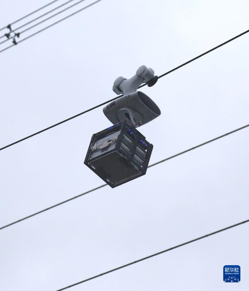 11月17日,在日本川崎市,空中索道機器人在面向媒體的試驗說(shuō)明會(huì )上演示運送商品。