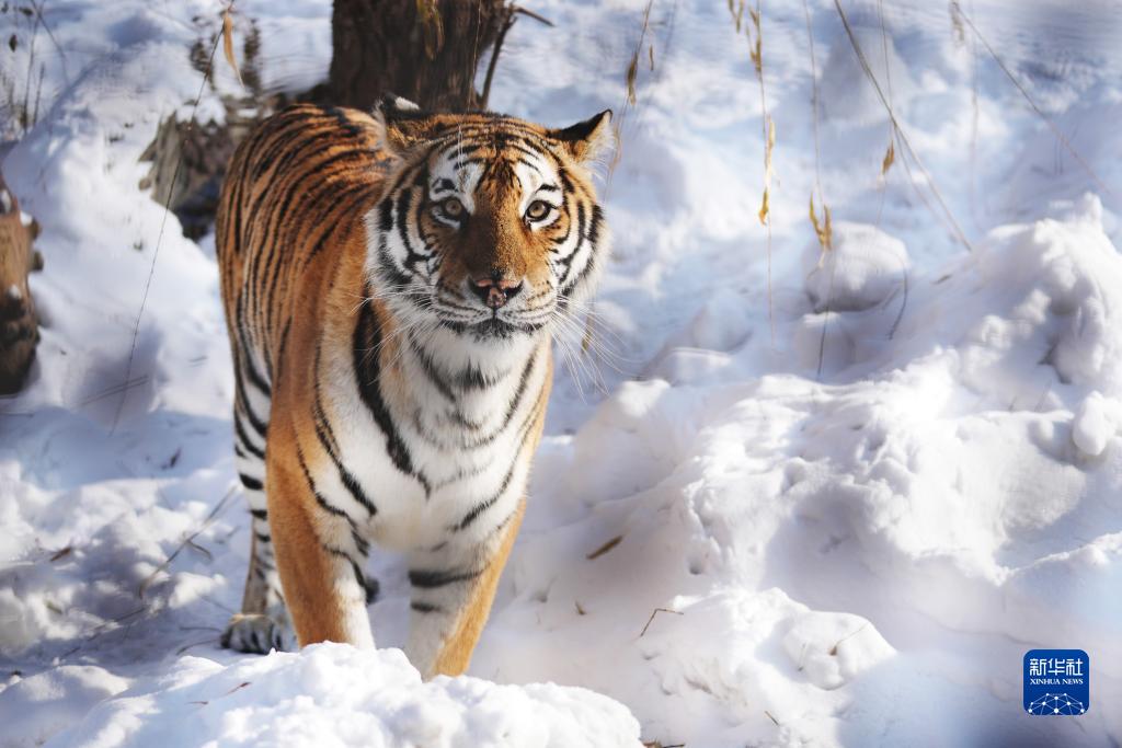 冰城哈爾濱市近日迎來(lái)數次降雪天氣,在黑龍江東北虎林園,散放區的東北虎在雪地活動(dòng)。