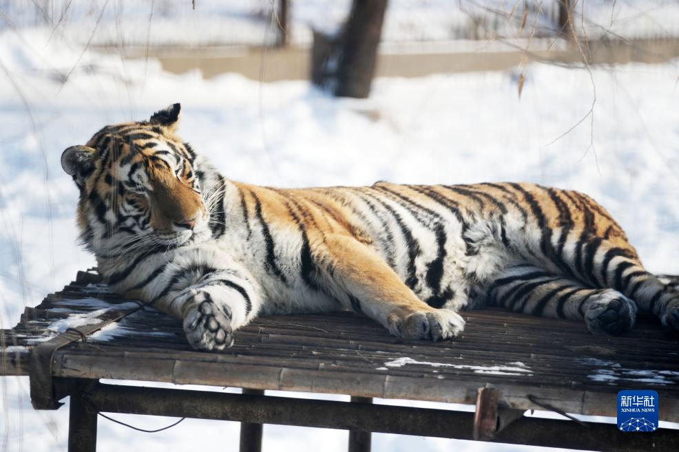 冰城哈爾濱市近日迎來(lái)數次降雪天氣,在黑龍江東北虎林園,散放區的東北虎在雪地活動(dòng)。