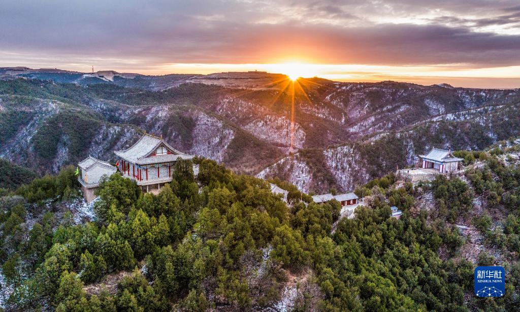 11月13日,陜西省延安市志丹縣九吾山森林公園在朝陽(yáng)的照射下,蒼翠森林披上金光,宛如一幅壯麗的畫(huà)卷。