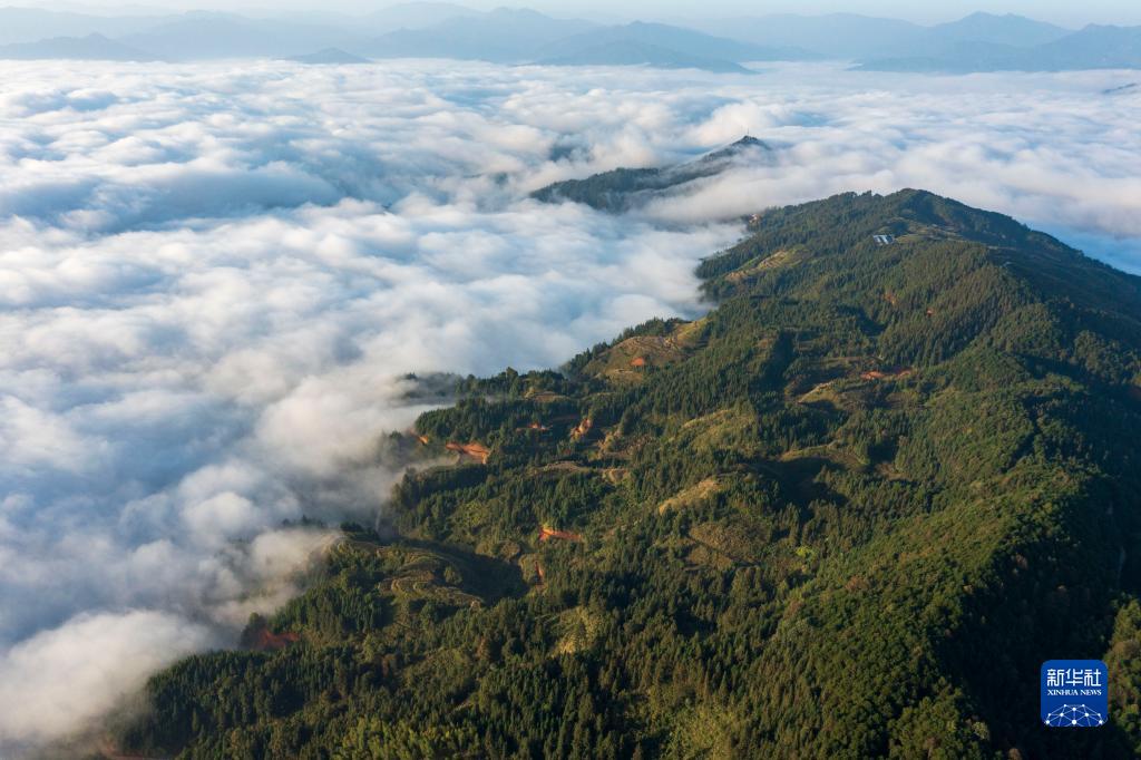11月17日拍攝的貴州省從江縣高增鄉新生村云海景觀(guān)(無(wú)人機照片)。
