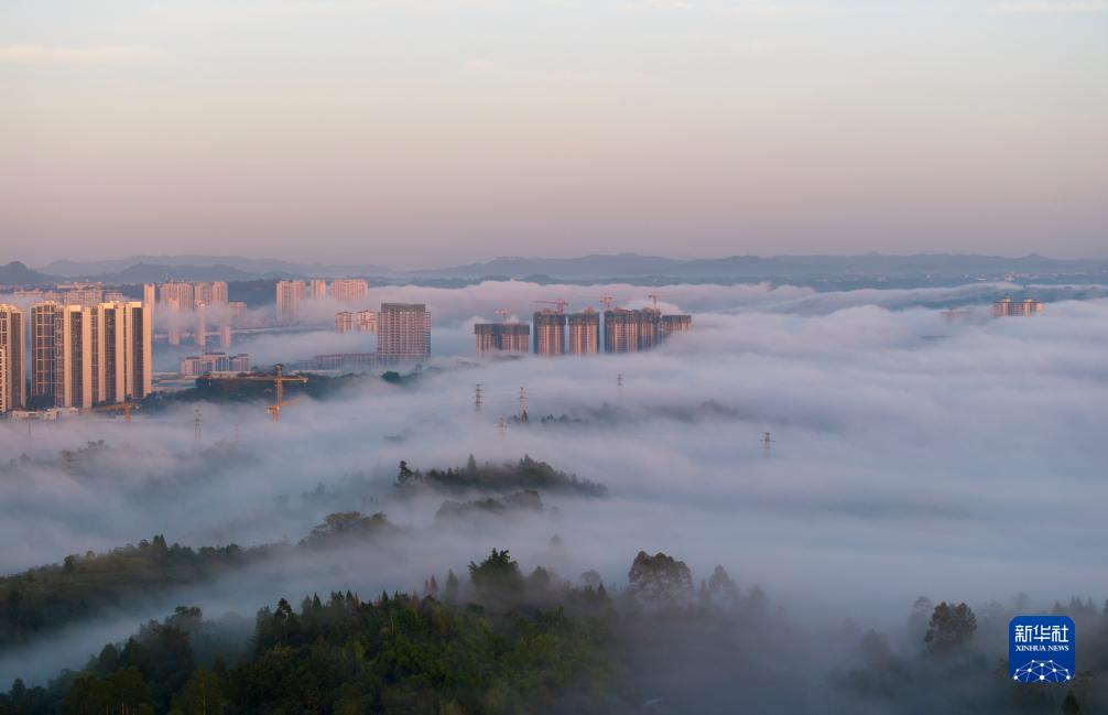 11月17日拍攝的四川省廣安市平流霧景觀(guān)(無(wú)人機照片)。