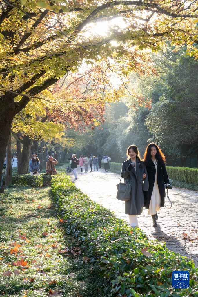 11月18日,游客在江蘇南京明孝陵景區石象路游覽。