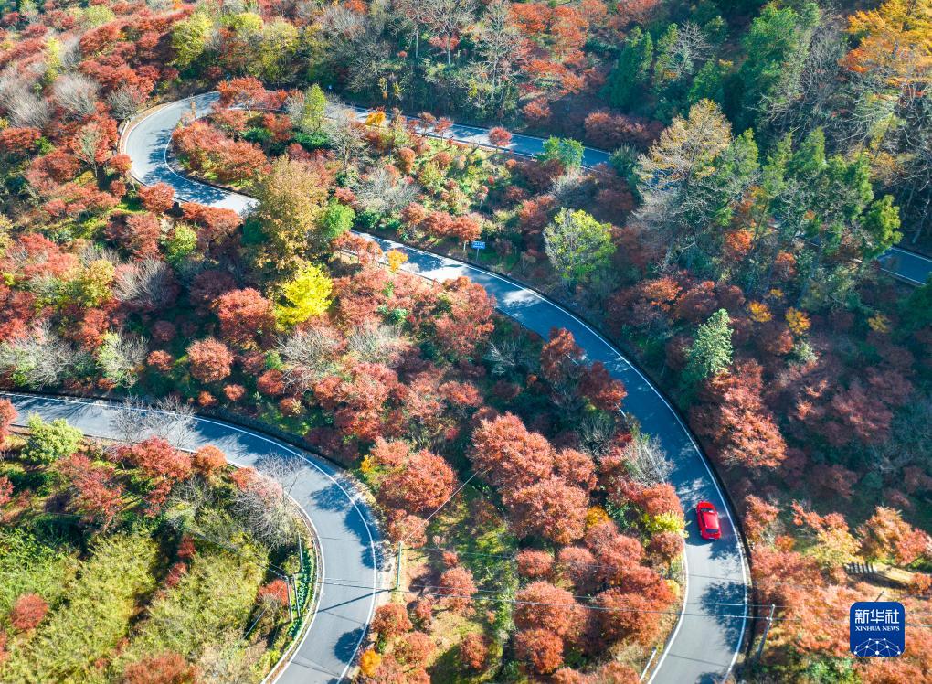 11月17日拍攝的浙江省余姚市四明山鎮梨洲村鄉村道路(無(wú)人機照片)。