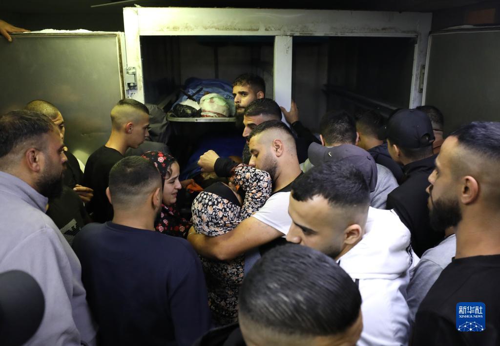 11月18日,在約旦河西岸城市納布盧斯的一家醫院,巴勒斯坦人送別在沖突中遇難的親屬。