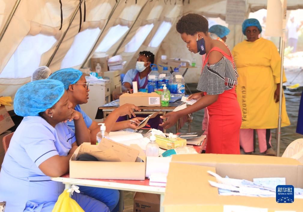 11月18日,在津巴布韋哈拉雷庫瓦扎納區一處診所,醫務(wù)人員指導患者就診。