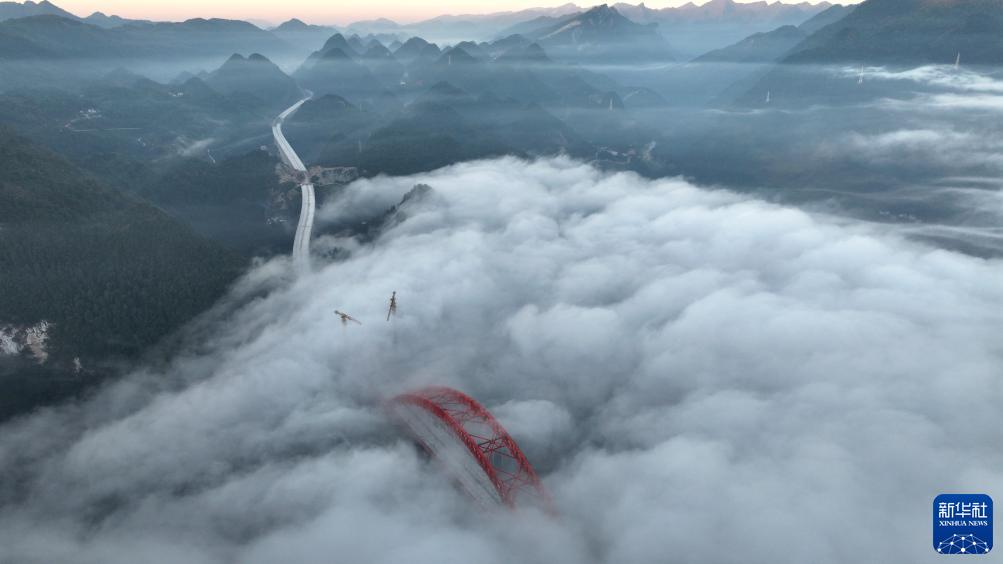 這是11月20日拍攝的建設中的溇水河特大橋(無(wú)人機照片)。