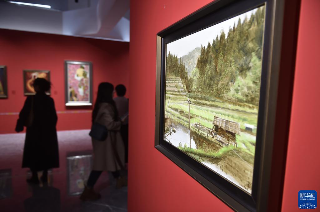 11月20日,觀(guān)眾在展覽現場(chǎng)參觀(guān)展出的作品。