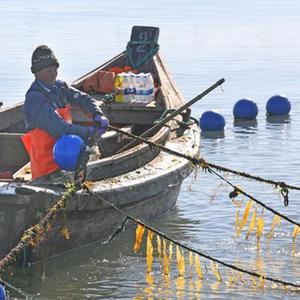 近期,在“海帶之都”山東省榮成市,海帶養殖區展開(kāi)海帶“播種”作業(yè),漁船在海面來(lái)往穿梭,一派忙碌景象。