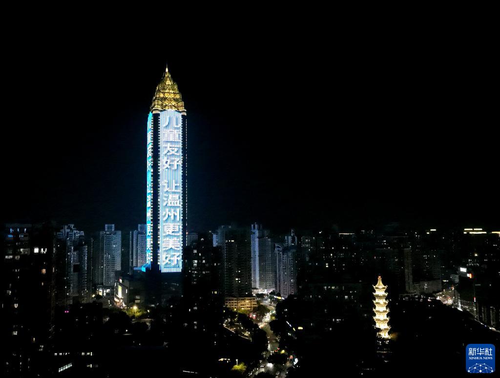 當日是世界兒童日,一些地區的地標建筑點(diǎn)亮象征兒童友好的藍色燈光。
