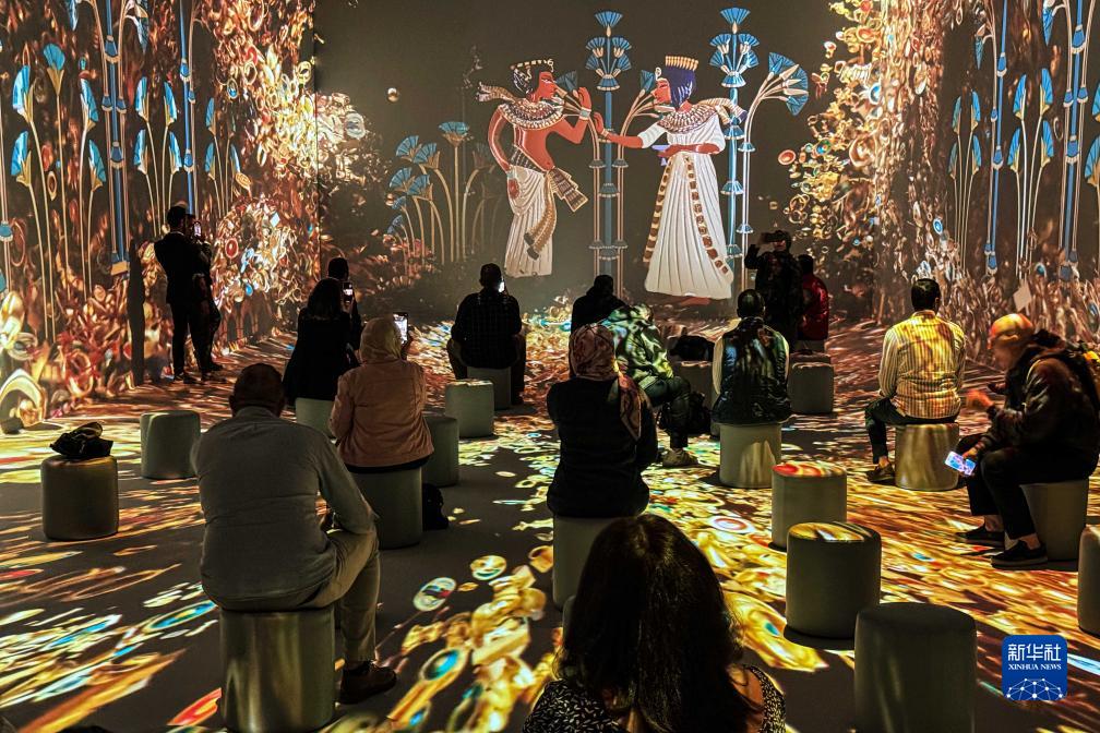 11月20日,人們在埃及吉薩的大埃及博物館參觀(guān)圖坦卡蒙沉浸式展覽。