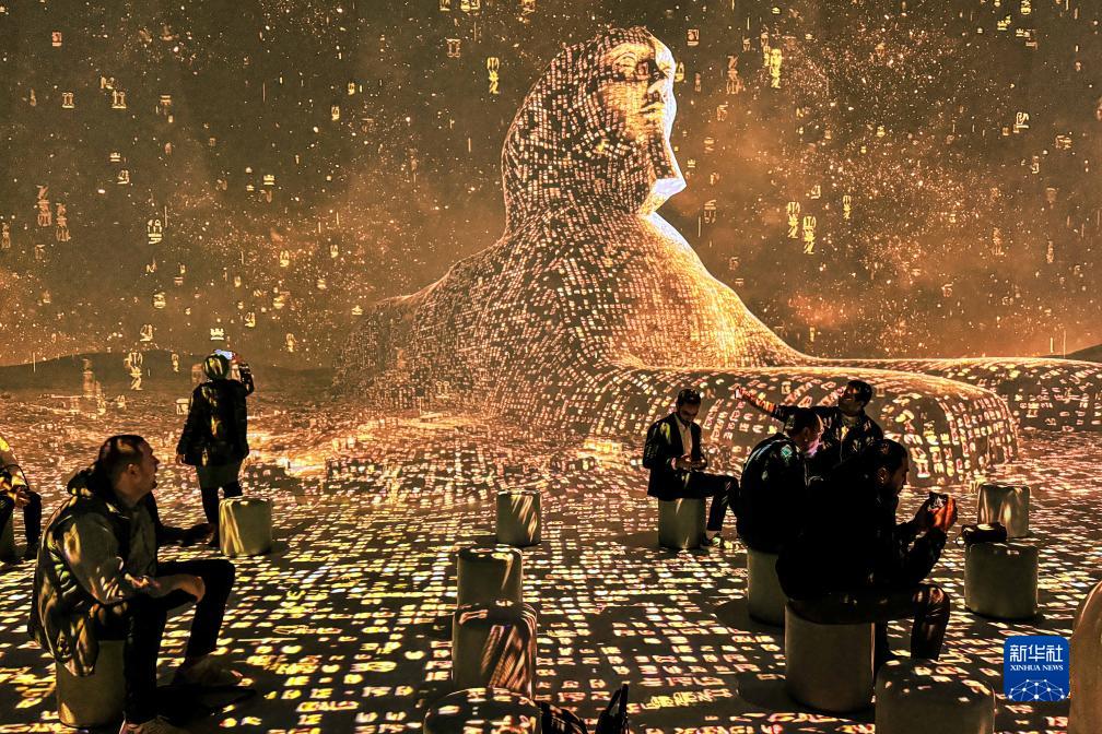 11月20日,人們在埃及吉薩的大埃及博物館參觀(guān)圖坦卡蒙沉浸式展覽。