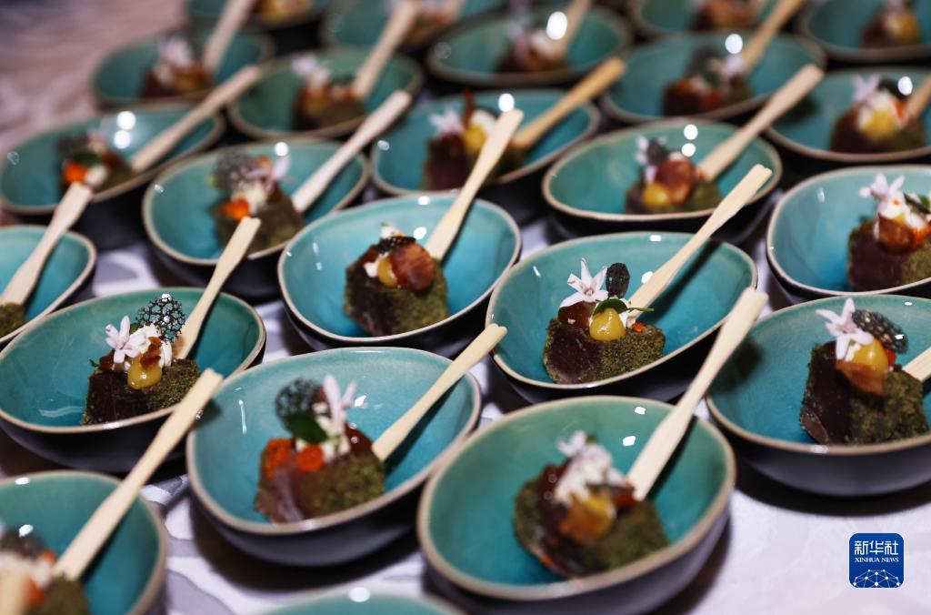 這是11月20日在位于巴黎的法國外交部舉行的LA LISTE國際美食榜單揭曉活動(dòng)現場(chǎng)拍攝的美食。