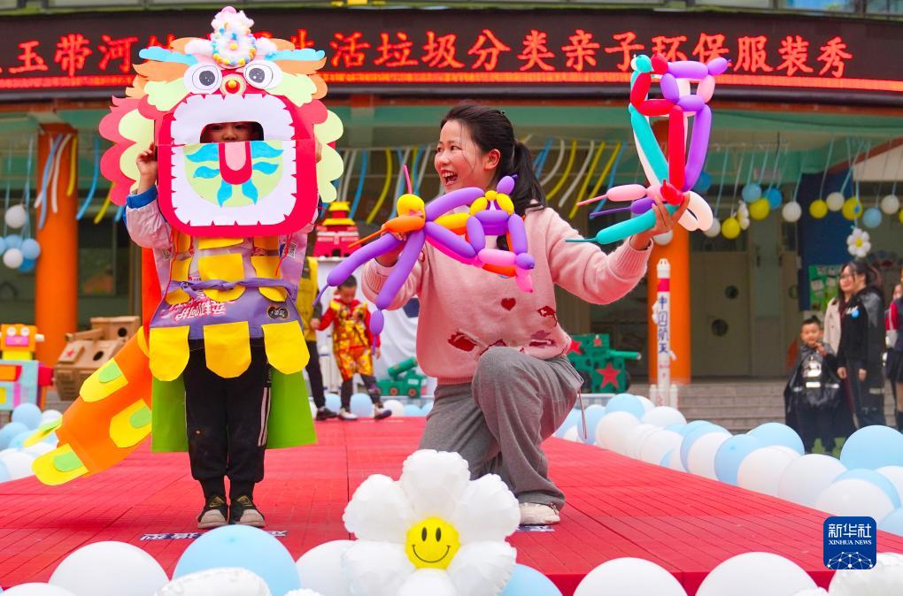當日,四川省瀘州市龍馬潭區玉帶河幼兒園舉辦了一場(chǎng)垃圾分類(lèi)親子時(shí)裝秀,小朋友和家長(cháng)身著(zhù)用廢紙殼、塑料袋、舊報紙等材料制作的各類(lèi)創(chuàng )意服裝走上舞臺進(jìn)行展示,讓低碳生活、變廢為寶的理念深入幼兒心靈。