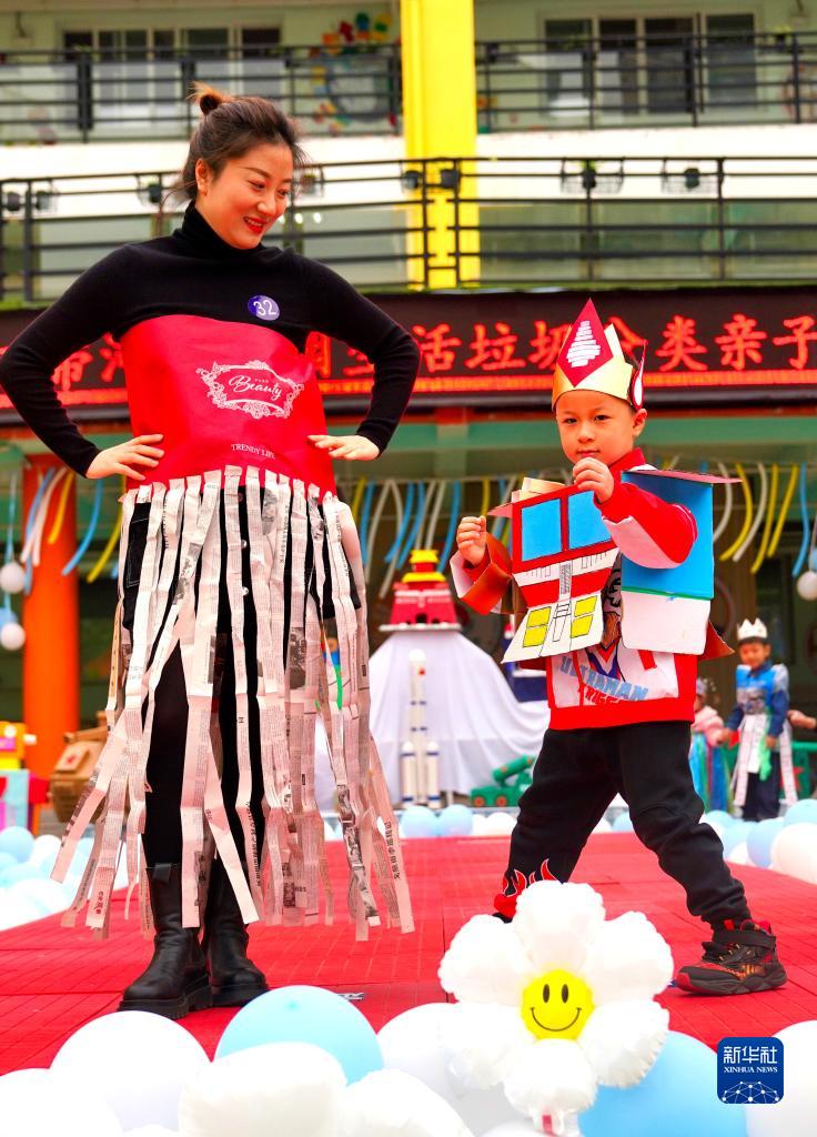 當日,四川省瀘州市龍馬潭區玉帶河幼兒園舉辦了一場(chǎng)垃圾分類(lèi)親子時(shí)裝秀,小朋友和家長(cháng)身著(zhù)用廢紙殼、塑料袋、舊報紙等材料制作的各類(lèi)創(chuàng )意服裝走上舞臺進(jìn)行展示,讓低碳生活、變廢為寶的理念深入幼兒心靈。