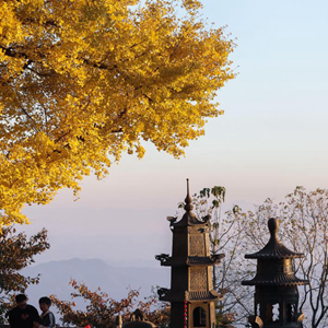 杭塢山位于浙江省諸暨市北部店口、次塢、姚江三鎮交界處,海拔500多米。初冬時(shí)節,杭塢山頂三德寺門(mén)外有著(zhù)500年和300年樹(shù)齡的兩株古銀杏金黃滿(mǎn)樹(shù),成為當地山鄉美麗的風(fēng)景。