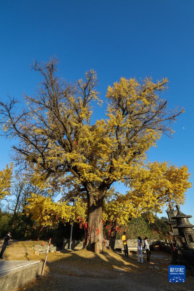 諸暨市店口鎮杭塢山頂的古銀杏樹(shù)葉金黃,吸引游人觀(guān)賞(11月21日攝)。