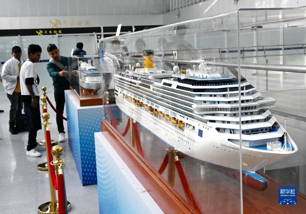 人們在青島郵輪母港客運中心內參觀(guān)(11月21日攝)。