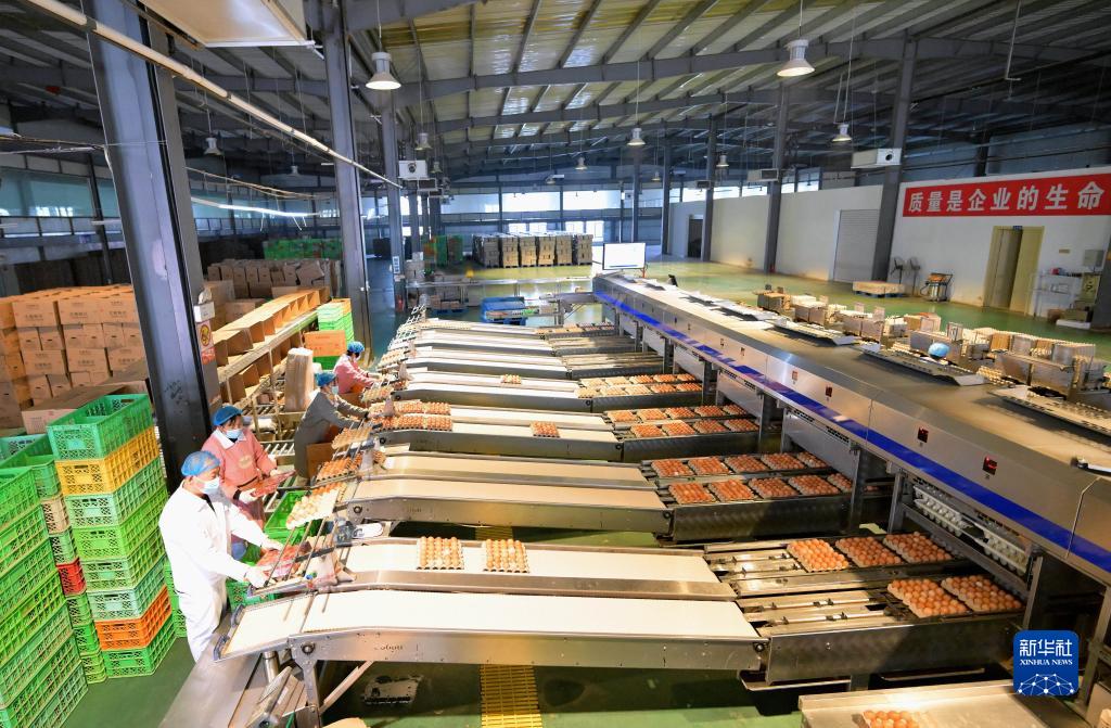 11月22日,工人在河北省唐山市蘆臺經(jīng)濟技術(shù)開(kāi)發(fā)區一家蛋雞養殖企業(yè)的車(chē)間分揀雞蛋。