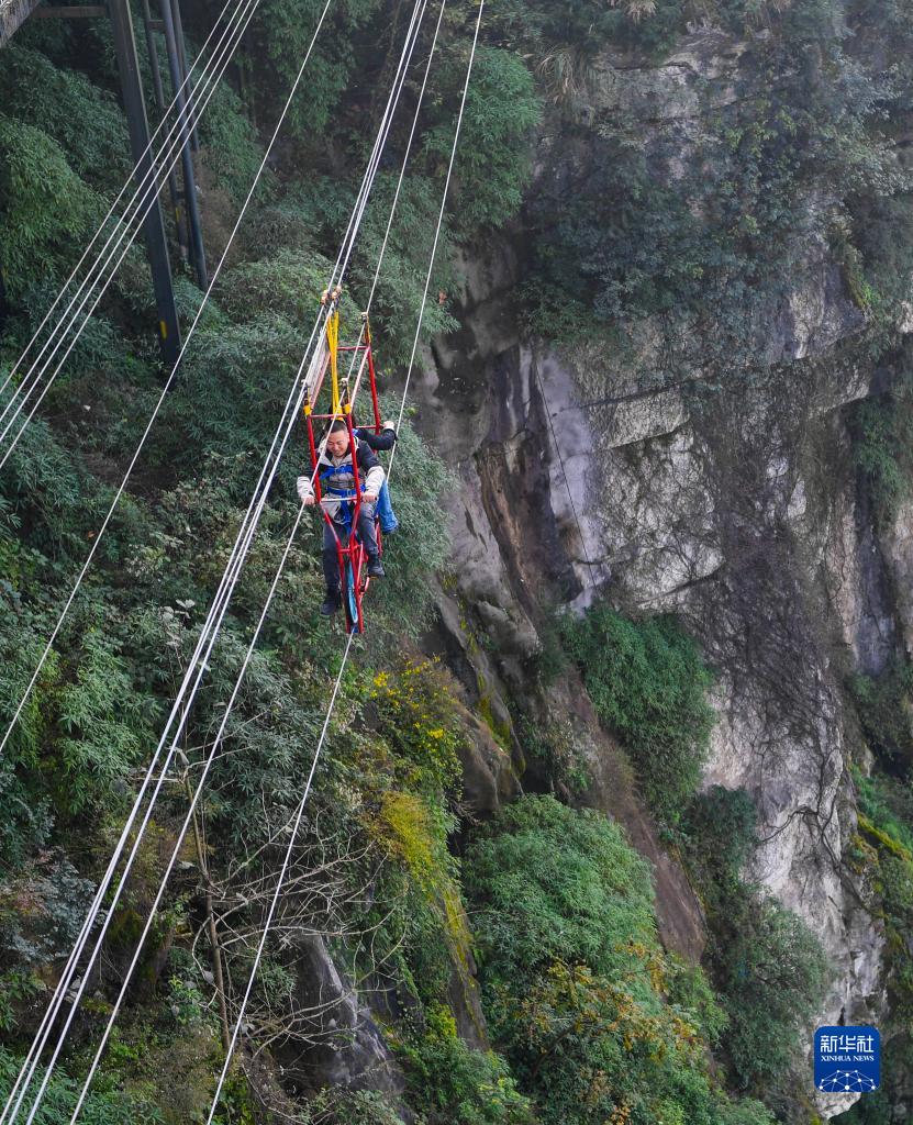 11月21日,游客在重慶市萬(wàn)盛經(jīng)開(kāi)區奧陶紀景區體驗“懸崖自行車(chē)”游玩項目。