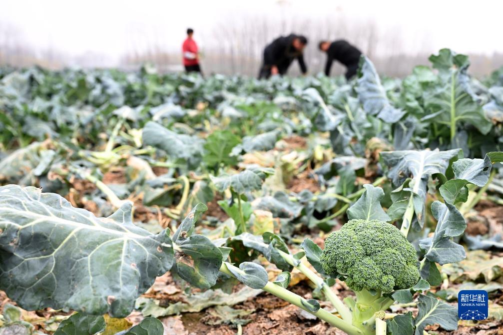 11月22日,在安徽省蚌埠市五河縣新集鎮李八村,村民在采收西藍花。