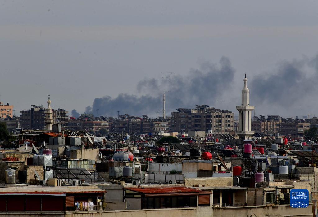 11月22日,敘利亞大馬士革附近遭以軍襲擊后冒起濃煙。