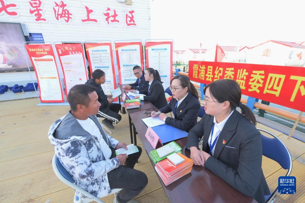 11月18日,福建省寧德市霞浦縣紀委監委工作人員在溪南鎮七星海上社區接訪(fǎng)。