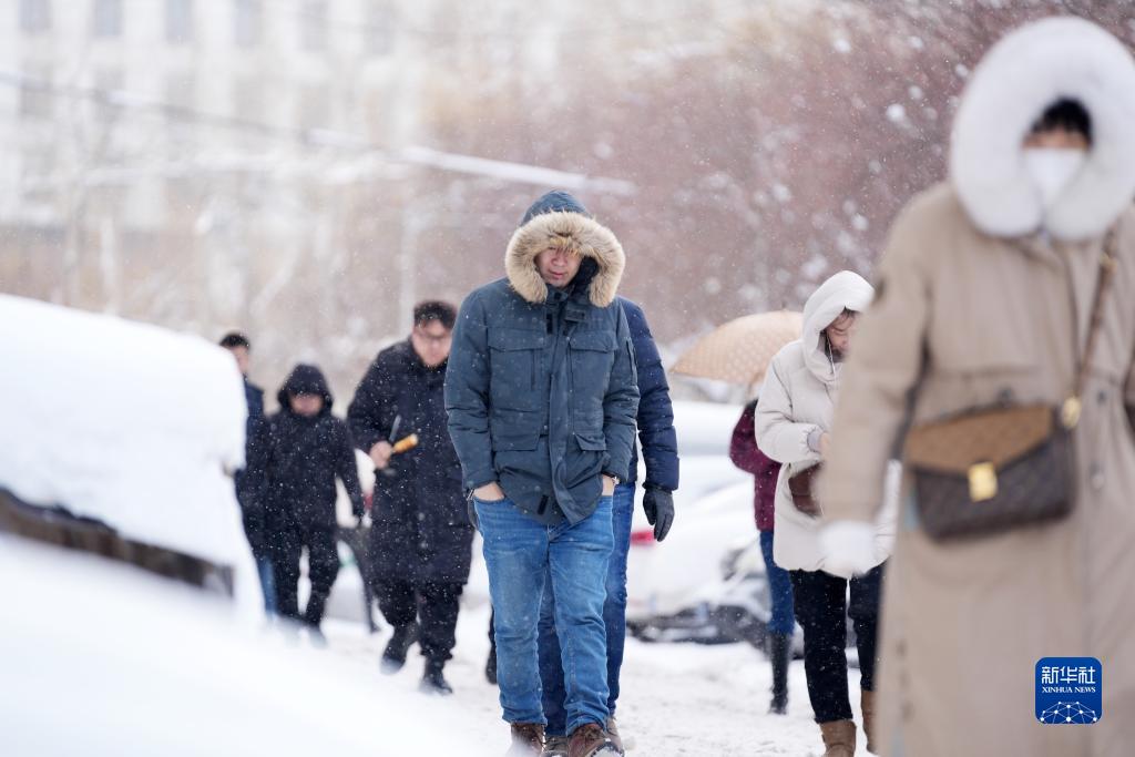 11月23日,哈爾濱市民在雪中前行。