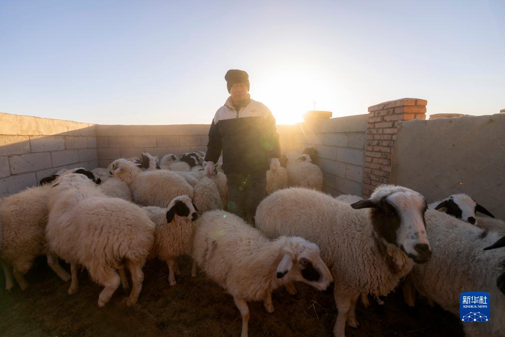 在內蒙古阿拉善左旗烏力吉蘇木溫都爾毛道嘎查,牧民朝勒門(mén)格爾勒在羊圈中忙碌(11月17日攝)。