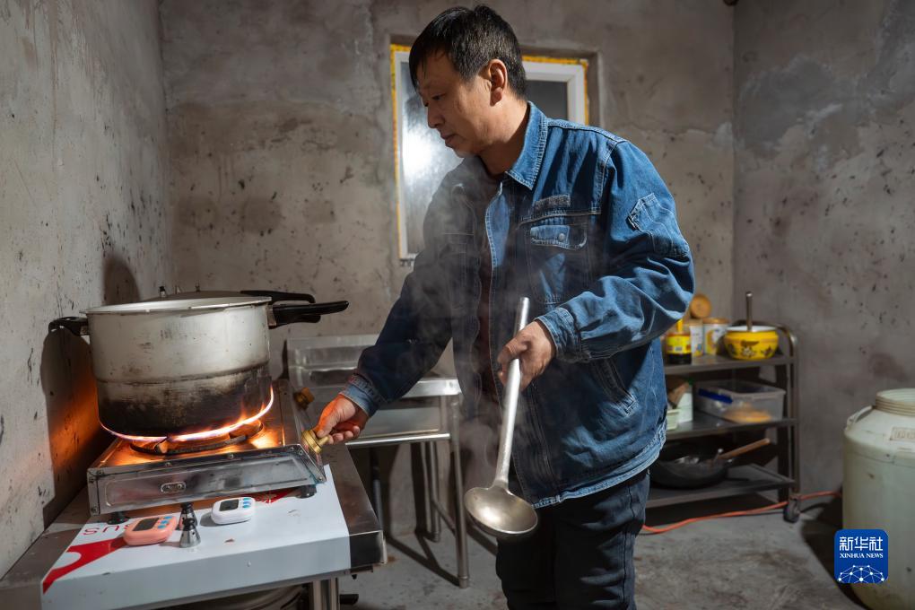 在內蒙古阿拉善左旗烏力吉蘇木溫都爾毛道嘎查,牧民朝勒門(mén)格爾勒在做晚飯(11月16日攝)。