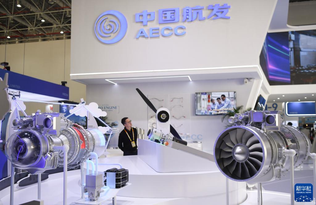 這是11月23日拍攝的中國航發(fā)展示的發(fā)動(dòng)機模型。