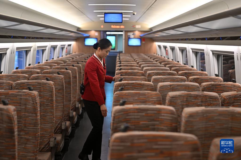 11月23日,客運員在運行試驗車(chē)的車(chē)廂內巡查。