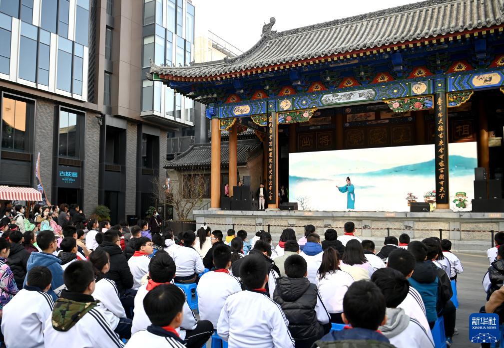 當日,西安市新城區“戲曲非遺傳薪火 國粹文化立自信”新時(shí)代文明實(shí)踐進(jìn)校園活動(dòng)在西安易俗社文化街區舉行。西安市新城區西一路小學(xué)的百余位師生聆聽(tīng)秦腔經(jīng)典曲目,感受傳統戲曲文化魅力。